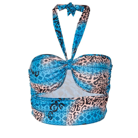 ALLNeon Y2K Fashion Camouflage Hollow Out Bandage Cropped Tops Punk Style Halter Backless Tank Tops Vintage Rave E-girl Outfits
