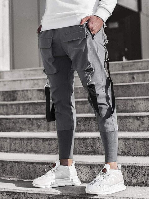 Hip Hop Boy Multi-pocket Elastic Waist Design Harem Pant Men Streetwear Punk Casual Trousers Jogger Male Dancing Black Pants