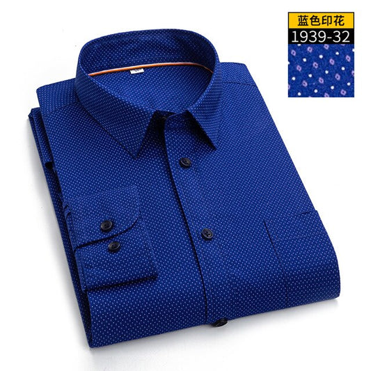 Regular Long Sleeve Men's Business Casual Shirt Autumn Slim Top Blouse Fit Fashion Print 97% Cotton Dress Shirts Asia Size