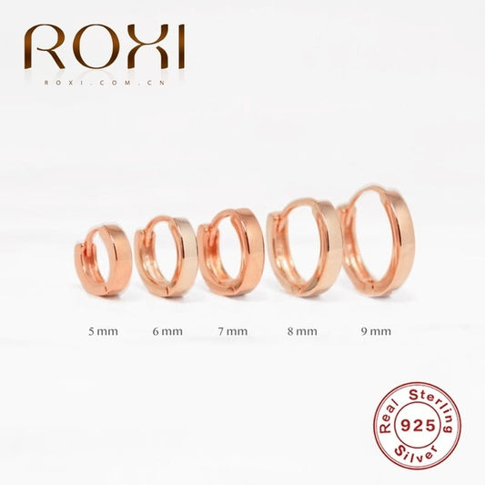 ROXI Minimalism Pendientes Round Glossy Hoop Earrings for Women Cartilage Kolczyki 925 Sterling Silver Fine Jewelry 5/6/7/8/9mm