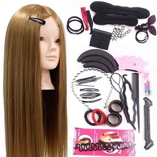 Salon 24" 50% Real Human Hair Training Head Practice Bride Hairstyle Hairdressing Doll Mannequin Head For Makeup +Comb Braid Set