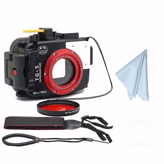 SeaFrogs TG5 60m/195ft Underwater Diving Waterproof Housing Camera Case for Olympus TG-5 Waterproof Camera Bags with Red Filter