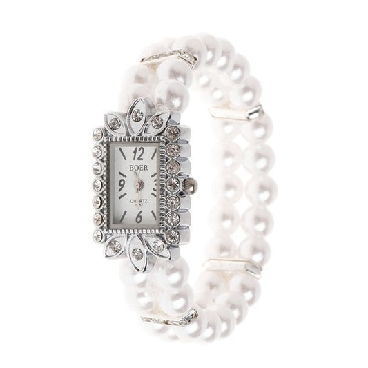 Women Watch Simulated Pearl Rhinestone Luxury Elegant Wrist Band Bracelet Jewelry Gifts Lady Elastic Universal Charms