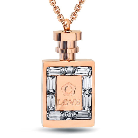 ZORCVENS Fashion 316L Stainless Steel Jewelry luxury women Rose Gold Color Perfume Bottle necklace chain Lady Crystal Jewelry