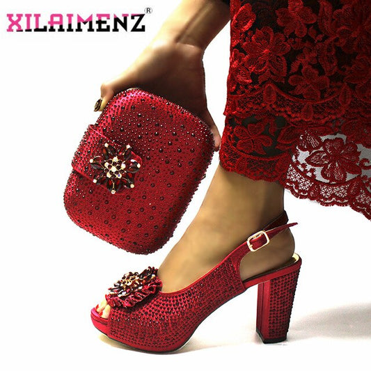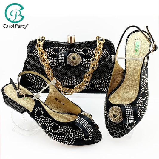 New Arrival Italian Shoes with Matching Bags Set Decorated with Rhinestone Women Shoes and Bags To Match Set Italy Party Pumps