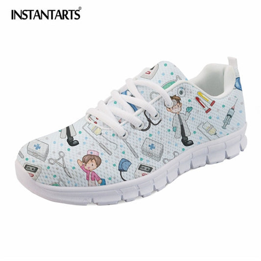 INSTANTARTS Spring Nurse Flat Shoes Women Cute Cartoon Nurses Printed Women's Sneakers Shoes Breath Mesh Flats Zapatos de Mujer