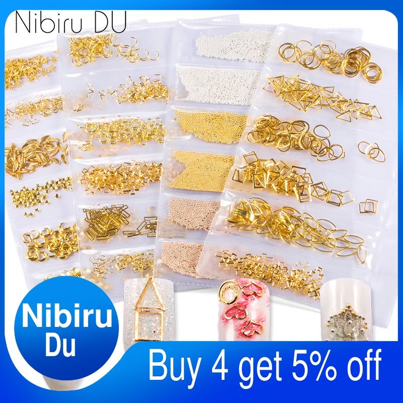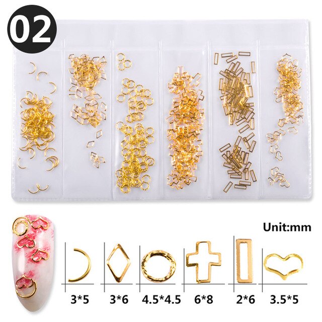 1 Pack Mixed 3D DIY Hollow Metal Frame Nail Art Decorations Gold Rivet Manicure Accessories Summer Shell Slider Nail Studs