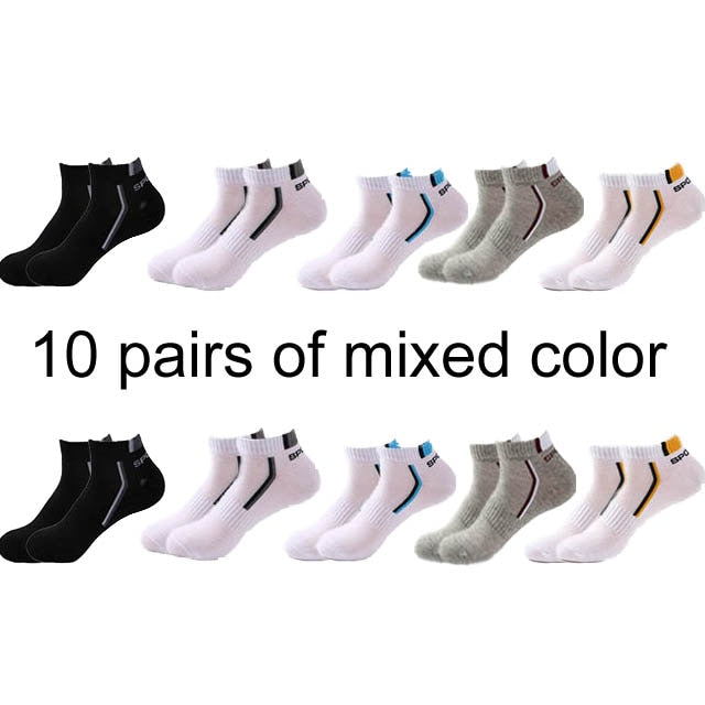 10 Pair High Quality Men Ankle Socks Breathable Cotton Sports Socks Mesh Casual Athletic Summer Thin Cut Short Sokken Size 38-48