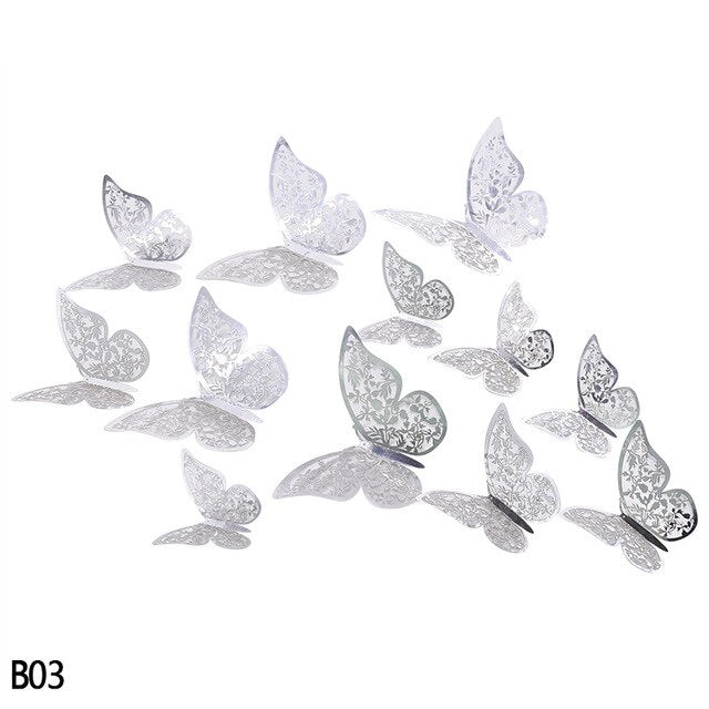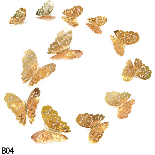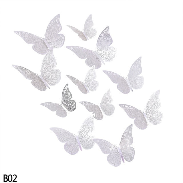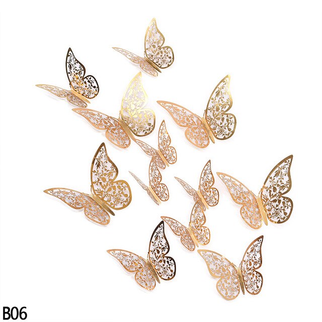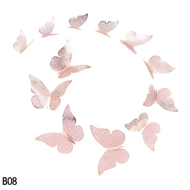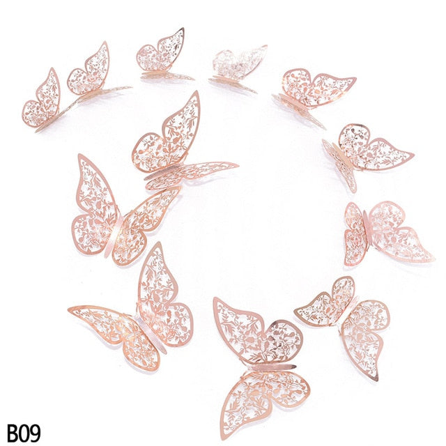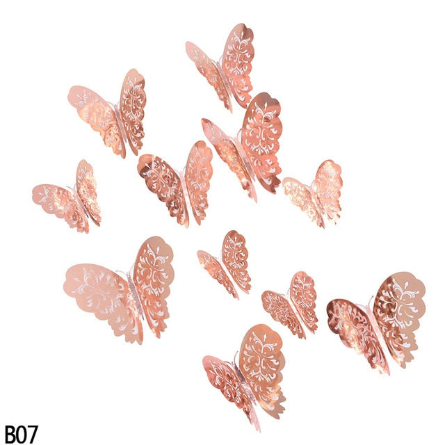 12Pcs Rose Gold Silver Hollow 3D Butterfly Wall Stickers For DIY Party Kids Wedding Room Decoration Home Wall Sticker Decal Deco