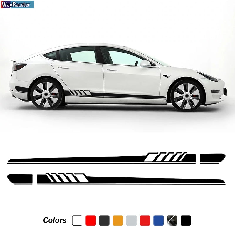 2 Pcs Car Door Side Skirt Stripes Sill Sticker Body Vinyl Decal For Tesla Model 3 /Model S /Model X /Model Y Accessories