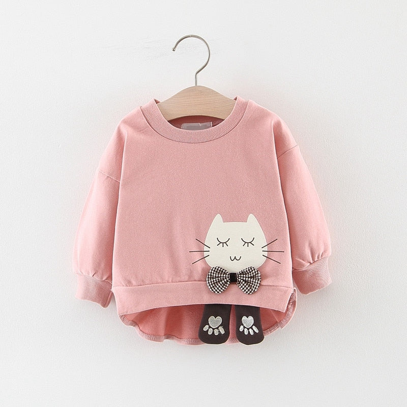 2019 Autumn Girls Sweatshirts Baby Infants Girl Clothes Kids Toddler Cartoon Cat Bow Long Sleeve Pullover Tops Outwear WT769