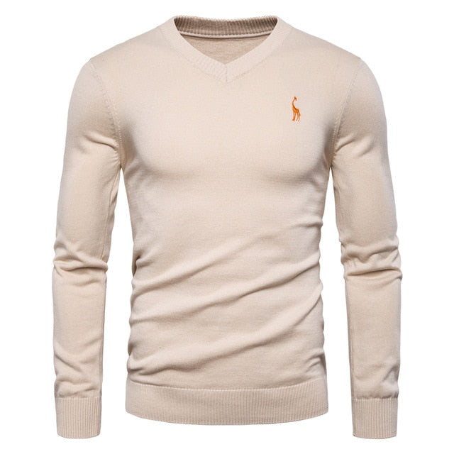 2019 Autumn Winter Brand Quality 100% Cotton Mens Sweaters V Neck Pullovers Men Solid Embroidery Sweater Men