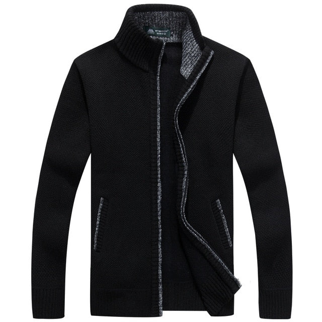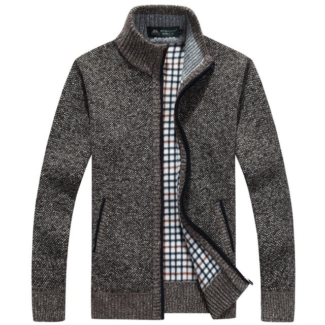 2020 Autumn Winter Men's Sweater Coat Faux Fur Wool Sweater Jackets Men Zipper Knitted Thick Coat Warm Casual Knitwear Cardigan