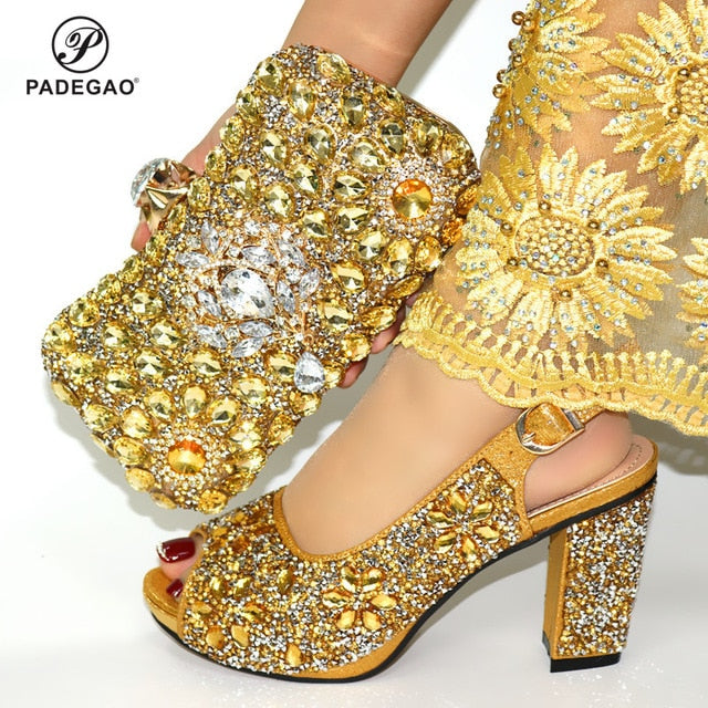 2020 Leisure Style Super High Heels Italian Shoes with Matching Bag for Woman African Shoes and Bag Set in Gold Color