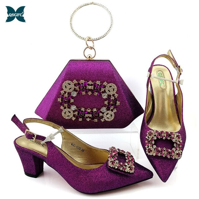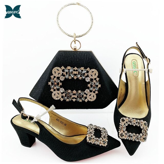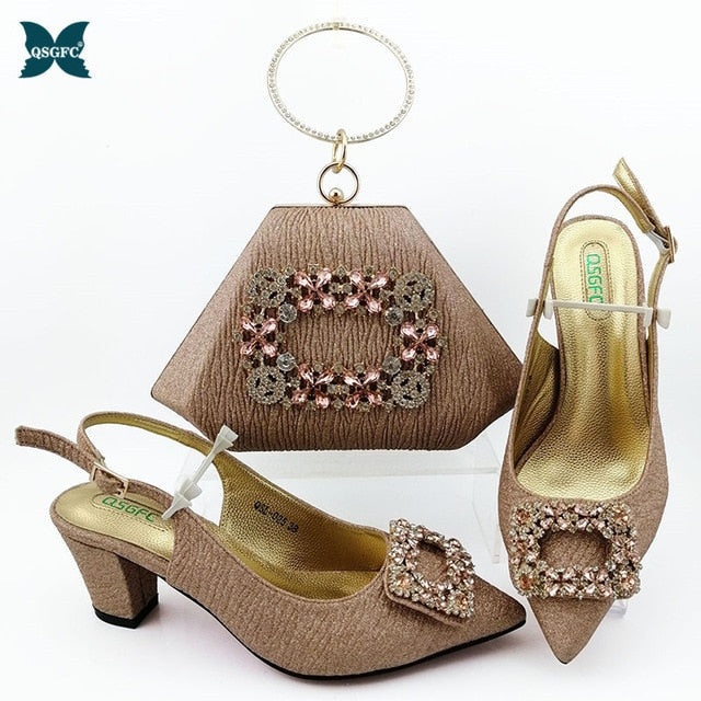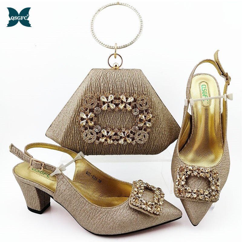 2020 New Arrival Gold Color Italian design Shoes with Matching Bags Set Decorated with Rhinestone Nigerian Women Wedding Shoes