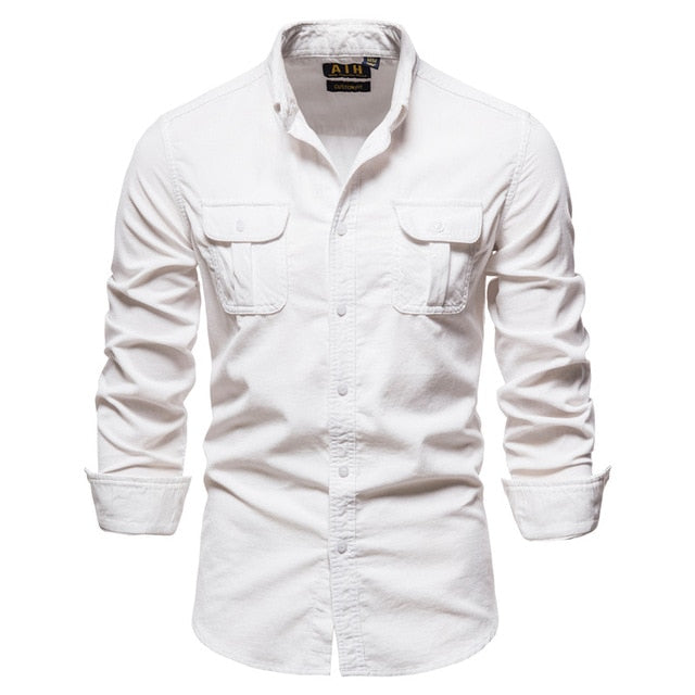 2020 New Single Breasted 100% Cotton Men's Shirt Business Casual Fashion Solid Color Corduroy Men Shirts Autumn Slim Shirt Men