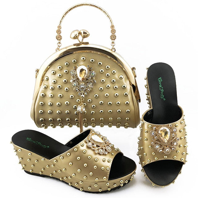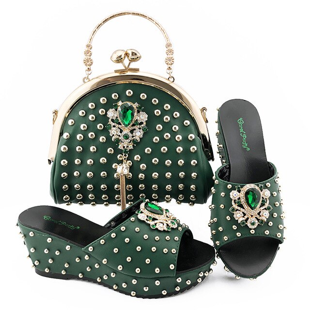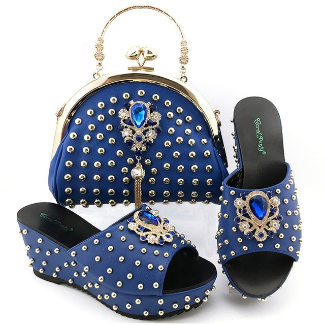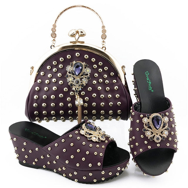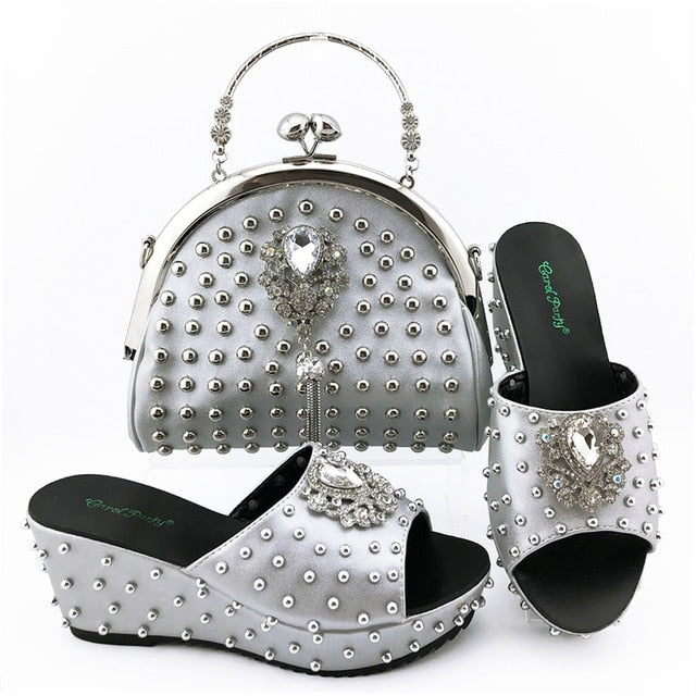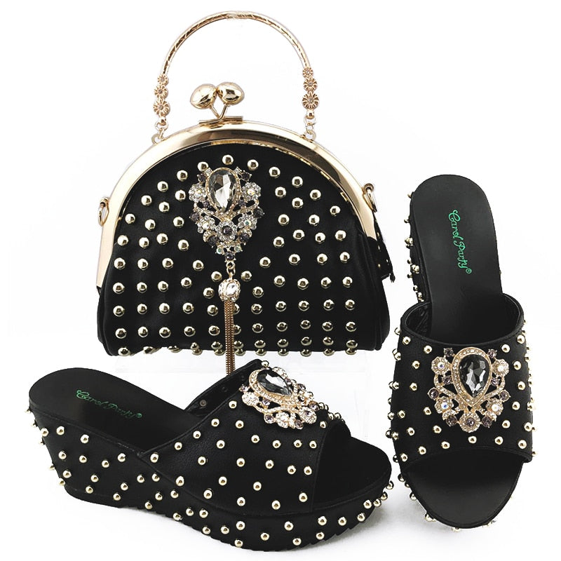 2020 Newest Fashion Party Shoes And Bags To Match Black Color African Shoes and Bag Set Italian Wedding Summer Shoes And Bag