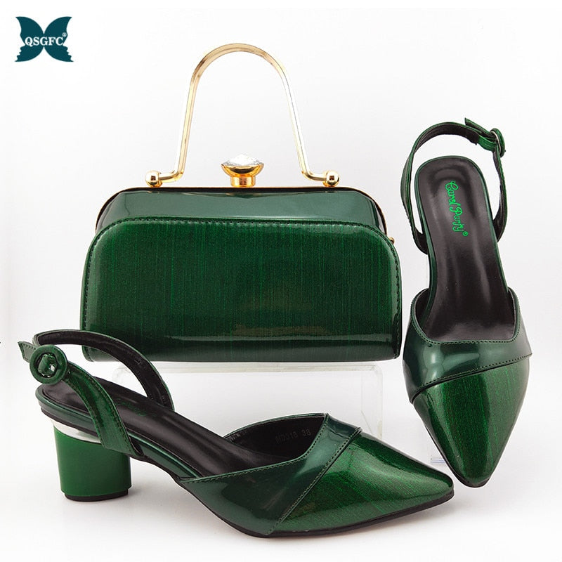 2020 Summer New Coming Italian design Green Color Shoes And Bag To Match Set Nigerian High Heels Party with Mature style