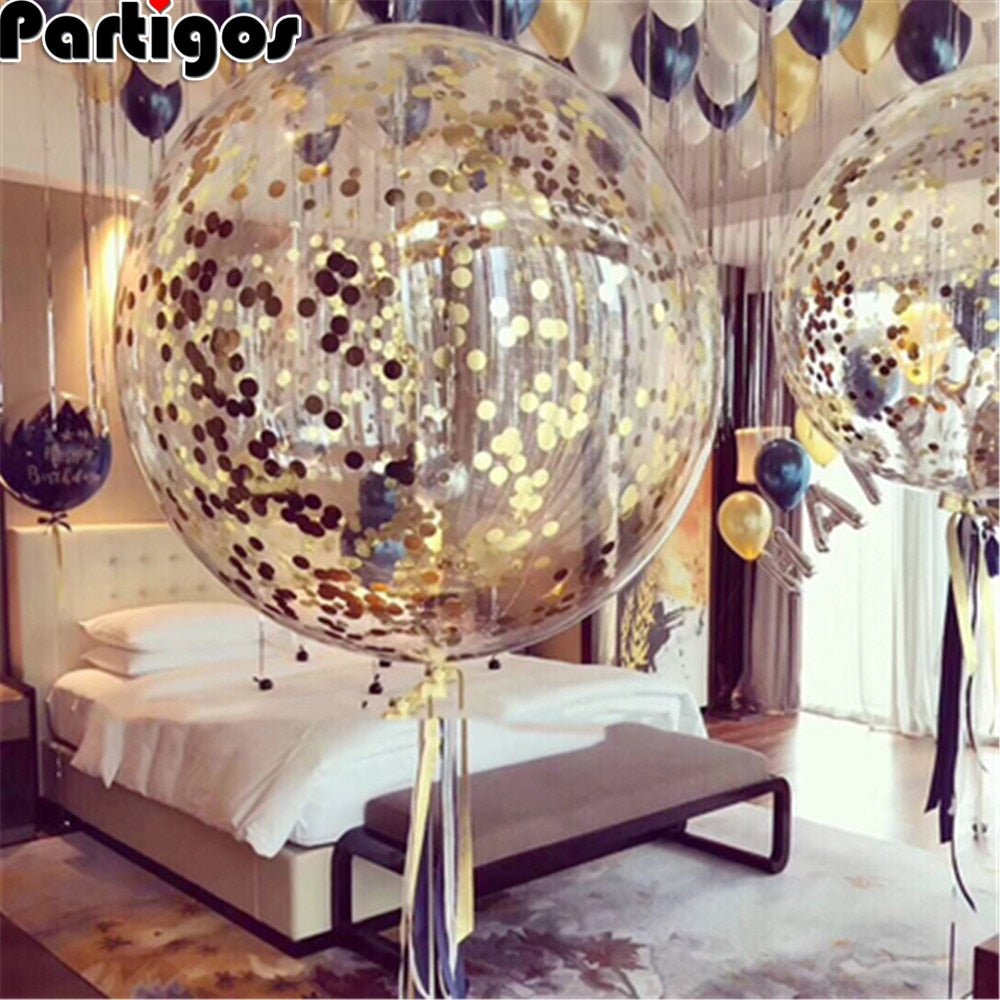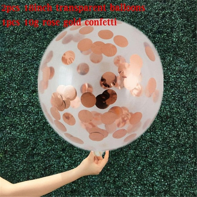 2pcs 18inch Rose Gold Confetti Balloon Wedding Decoration Inflatable Clear Latex Balloons Birthday Party Decoration Party Decor