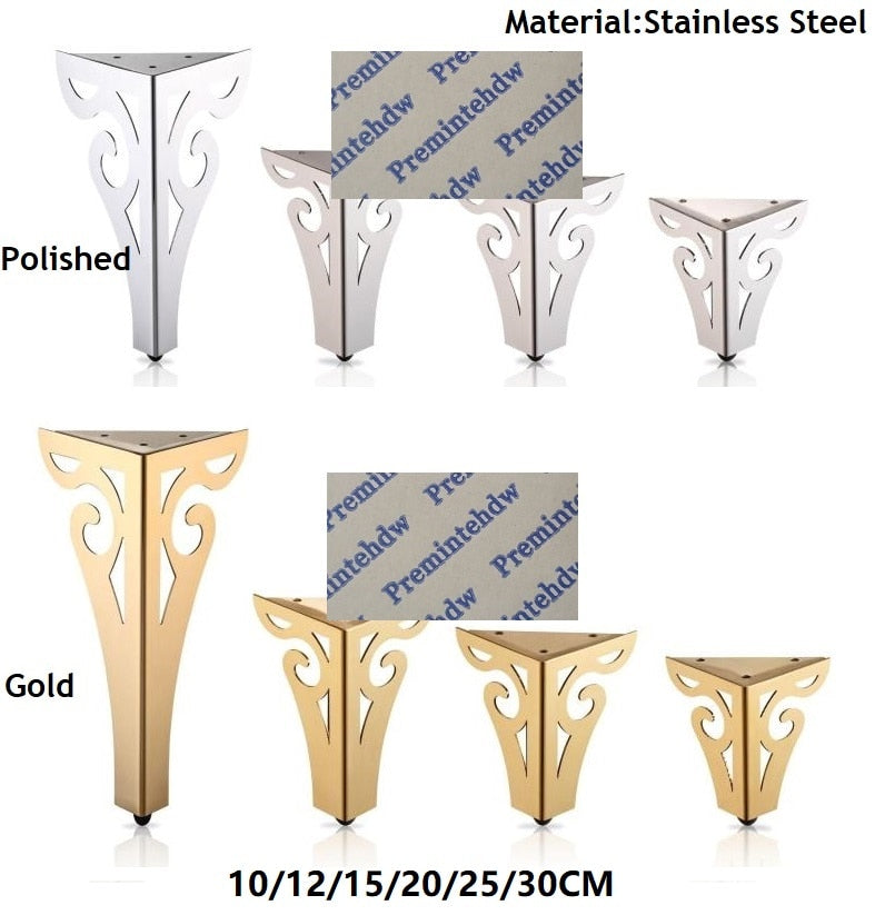 2Pcs/Lot Stainless Steel Furniture Sofa Legs European Hollow Out Flower Pattern Cabinet Feet Hardware Accessories Gold Polished