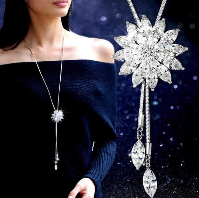 3COLOR New European new Flower triangle Crystals from Swarovskis Choker clothes Necklaces Jewelry For Women Christmas Party