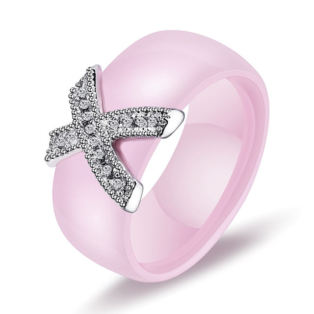 6mm White Black Ceramic Rings Plus Cubic Zirconia For Women Gold Color Stainless Steel Women Wedding Ring Engagement Jewelry