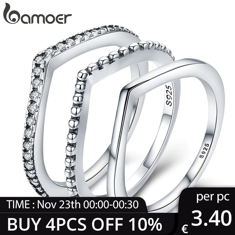 [add to cart win phone] BAMOER 100% 925 Sterling Silver Water Droplet Clear CZ Finger Rings for Women Wedding Gift PA7649