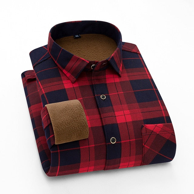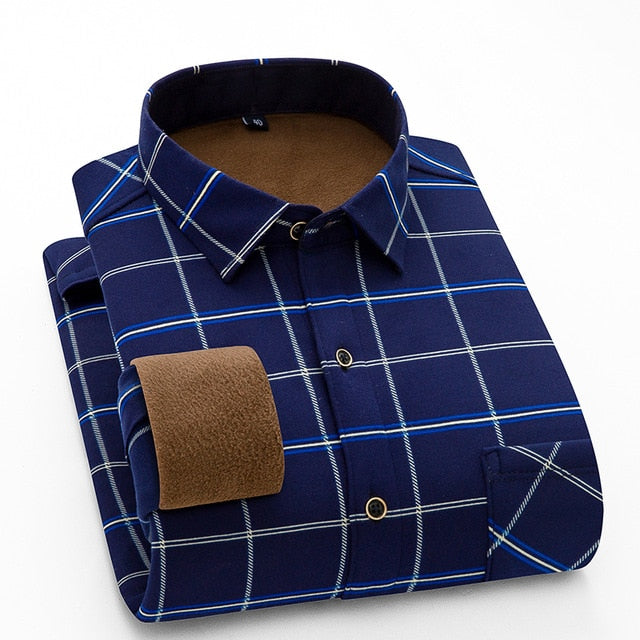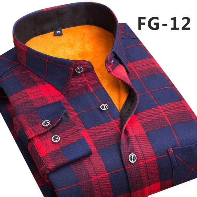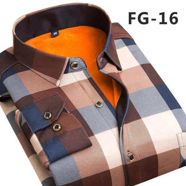 Aoliwen 2020 Fashion Men's Slim Shirts Autumn And Winter Thickening Warm Plaid 24 Colors Male Social Shirt Clothing Size M-5Xl