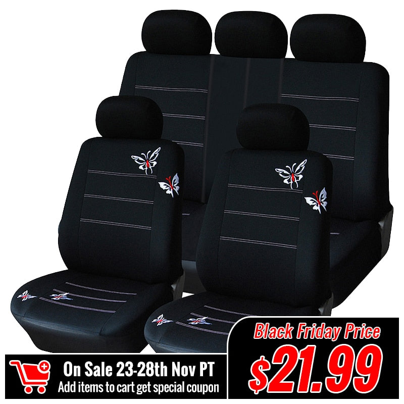 AUTOYOUTH Butterfly Embroidered Car Seat Cover Universal Fit Most Vehicles Seats Interior Accessories Black Seat Covers
