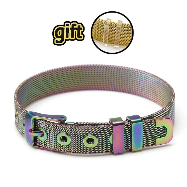 Buipoey Stainless Steel Bracelet Base Chain Charm Jewelry Bracelet For Women Men Watch Belt Charm 10mm Mesh Belt Bracelet Gift