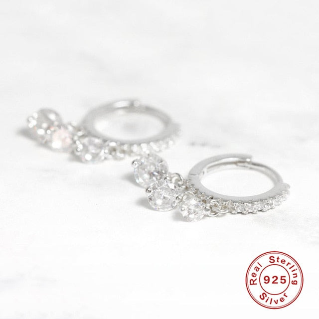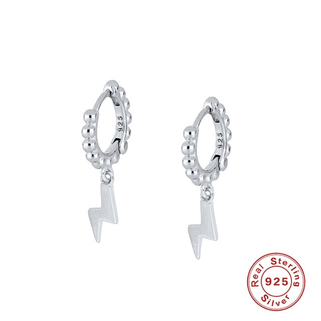 CANNER Real 925 Sterling Silver Earrings For Women Pearl French Cross Lightning Earrings Hoops Three Zircon Diamond Jewelry