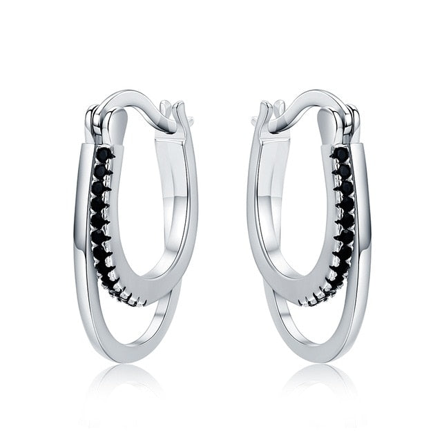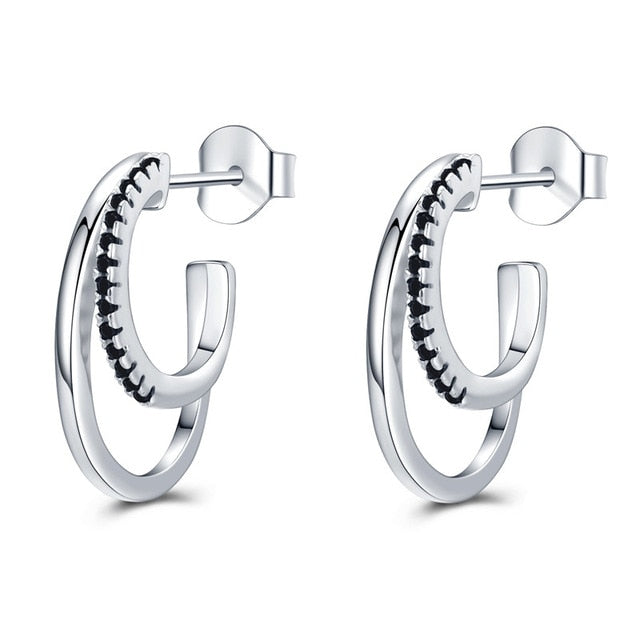Classic Genuine 925 Sterling Silver Jewelry Black Spinel Stone Cute Stud Earrings for Women Bijoux Femme Boucles d'oreilles I023