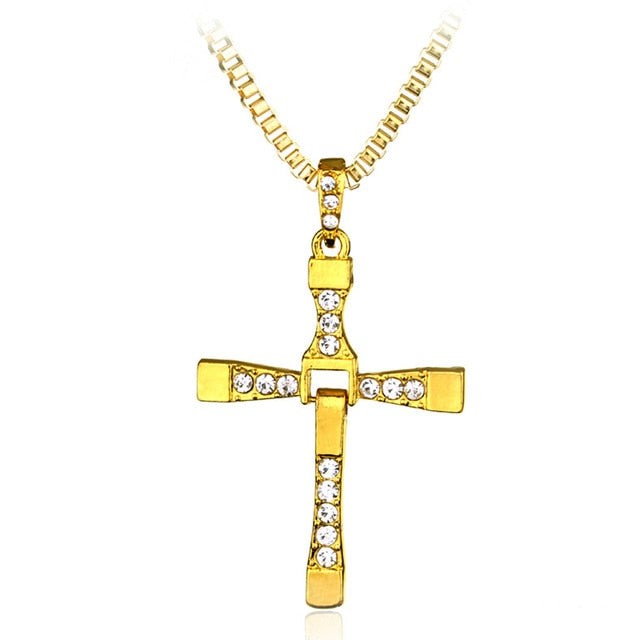 Classic Rhinestone Pendant Sliver Men Crystal Jesus Cross Pendant Long Necklace Activities Male Gift Jewelry Accessory