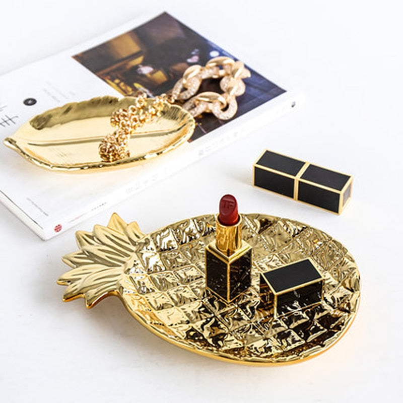 Creative Gold Pineapple Ceramic Storage Tray Golden Pineapple Jewelry Pallet Food Pallet Dry Fruit Plate Home Decoration Plate