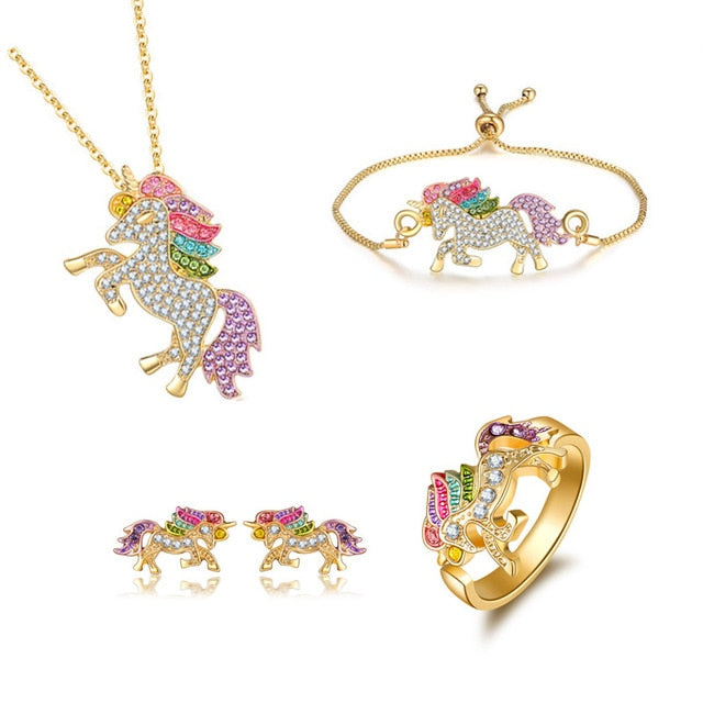 Cute Unicorn Necklace Fashion Cartoon Horse Jewelry Accessories For Girls Children Kids Women Party Animal Pendant Bracelet Set