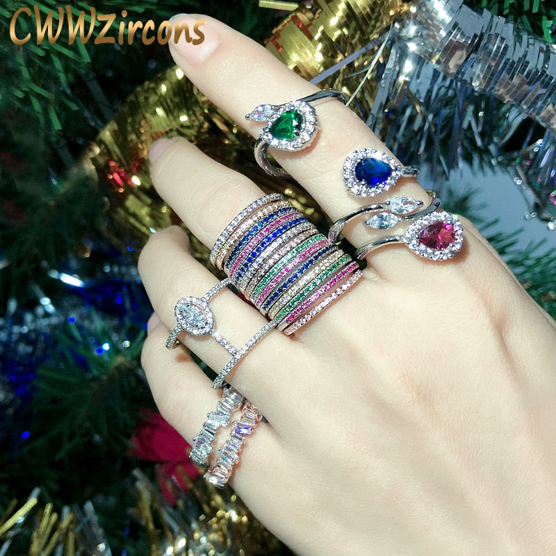 CWWZircons Stack Skinny Micro Pave CZ Fashion Women Engagement Wedding Bridal Party Cubic Zirconia Rings Sets Jewelry Gift R127