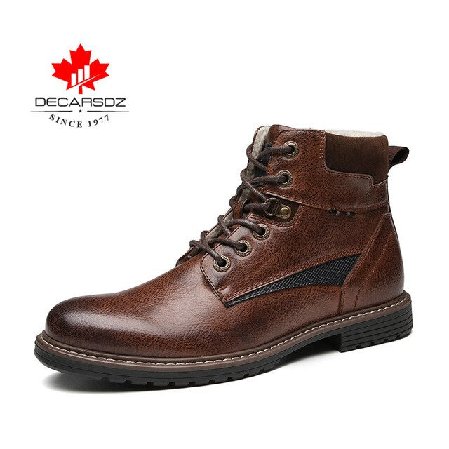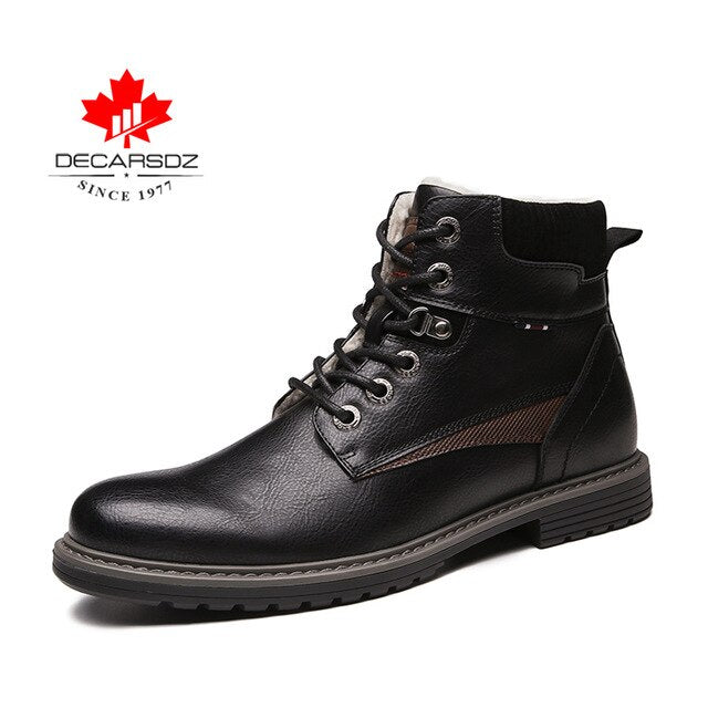 DECARSDZ Men Winter Boots 2020 Autumn New Fashion Shoes Men Boots Comfy Lace-up Leather Warm Short plush Men's Boots Men Shoes