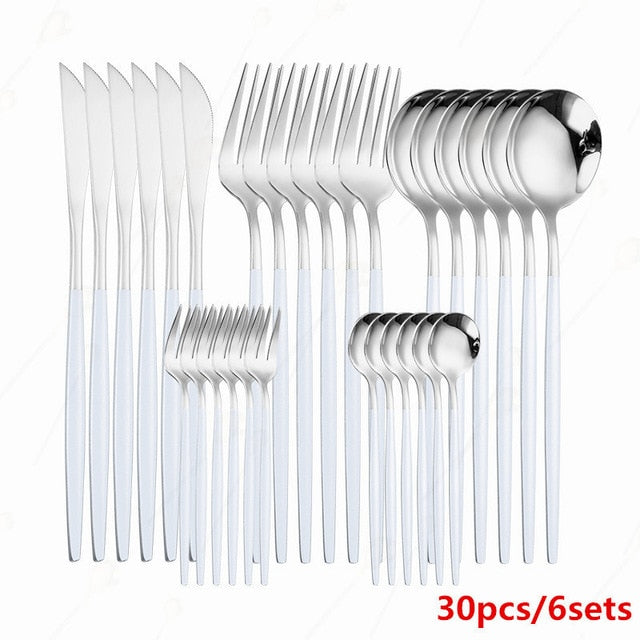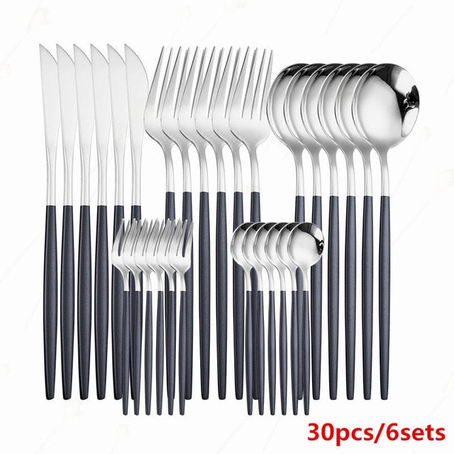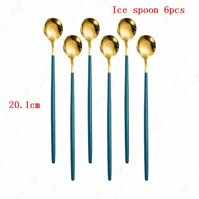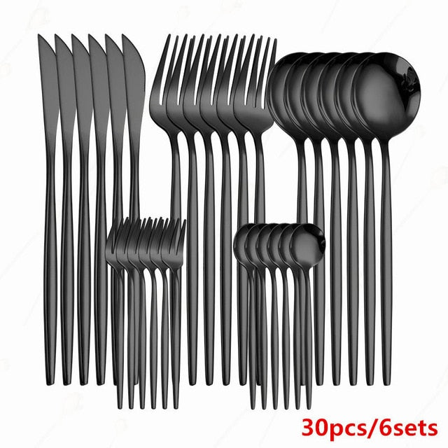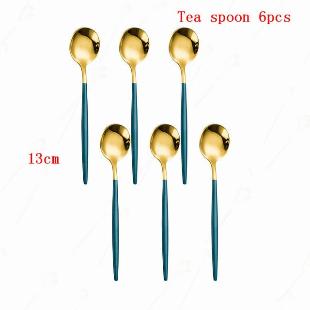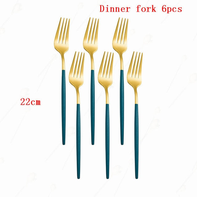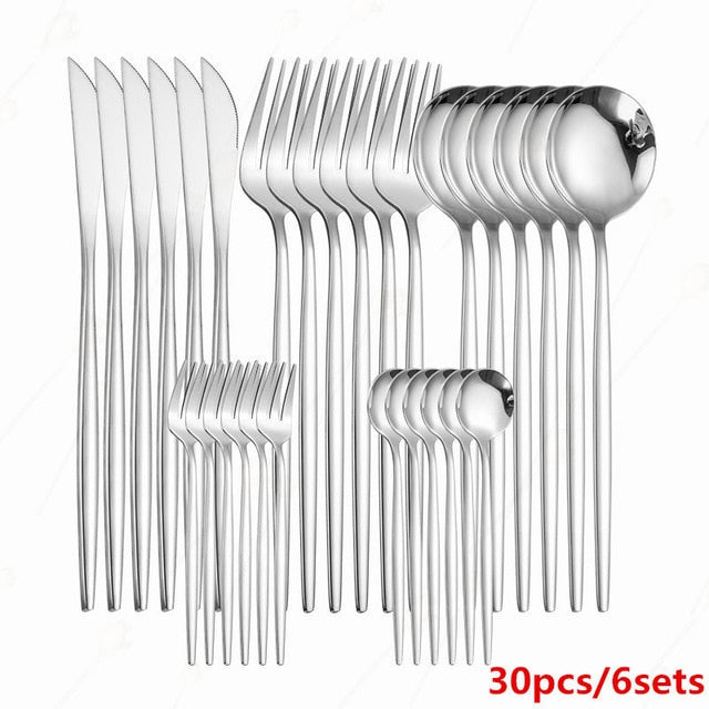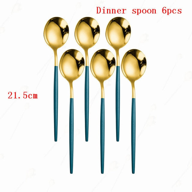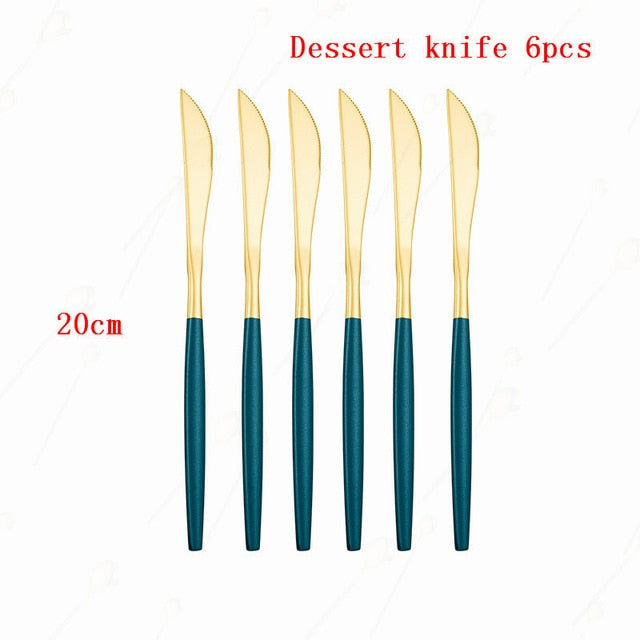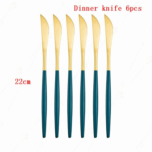 Dinnerware Sets Stainless Steel Cutlery Set Korean Kitchen Mirror Gold Complete Tableware Knife Fork Spoon Dinning table Set