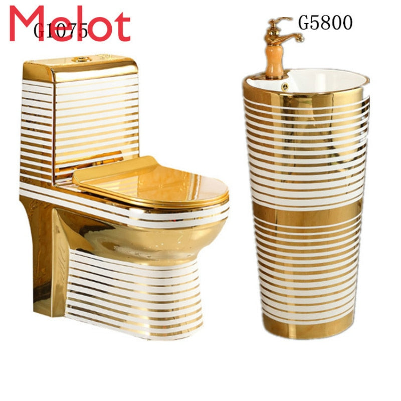 golden ceramic wc bathroom gold toilet bowl with basin washdown SASO gold color toilet