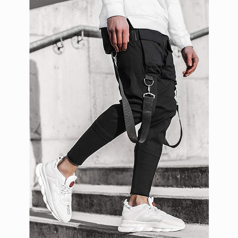 Hip Hop Boy Multi-pocket Elastic Waist Design Harem Pant Men Streetwear Punk Casual Trousers Jogger Male Dancing Black Pants