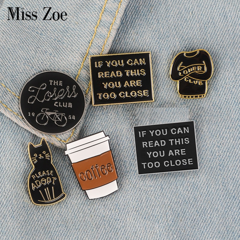 Introvert Loner Loser Club Enamel Pins Autism Badges Custom Cat Brooches Bag Clothes Lapel Pin Punk Black White Jewelry Gift