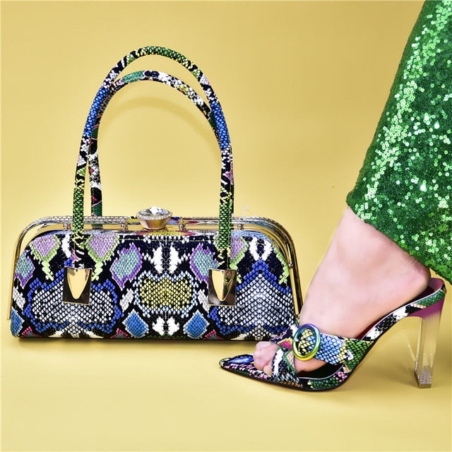 Italian Women Shoes and Bags To Match Set Sale Women Party Shoe and Bag Set Decorated with Rhinestone Ladies Sandals with Heels