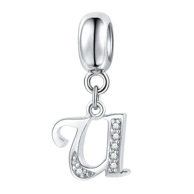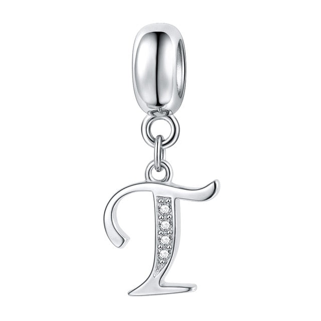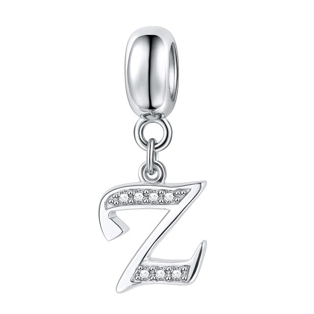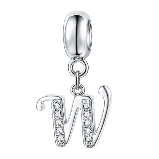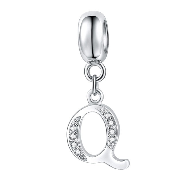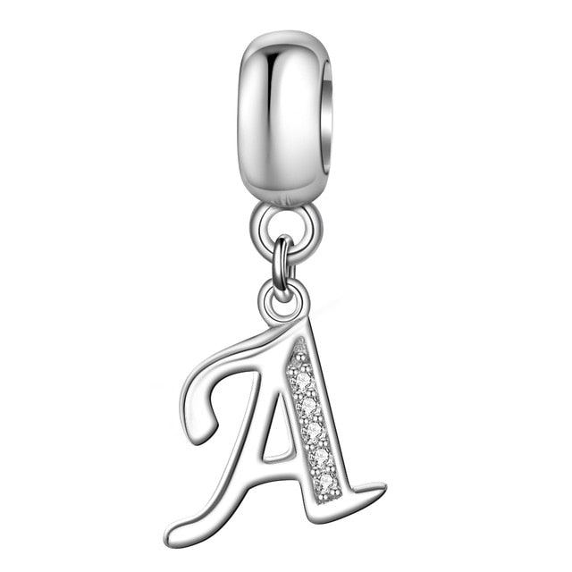 Jiayiqi A To Z Letter Charms 925 Sterling Silver CZ Beads Fit Women Charms Silver 925 Original DIY Jewelry Gift Making