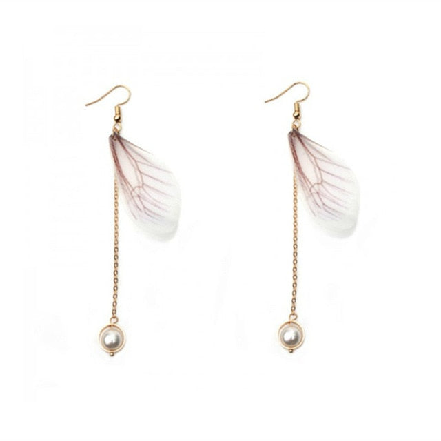 Korean Retro Asymmetric Butterfly Imitation Pearl Earrings Fashion Round Flower Brincos Long Statement Wings Earrings Jewelry