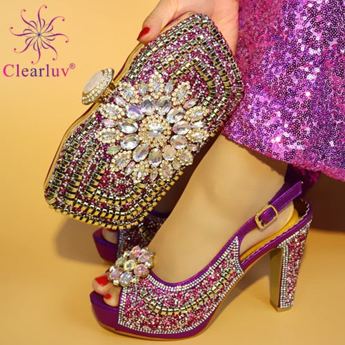 Ladies Italian Leather Shoe and Bag Set Blue Color Italian Shoe with Matching Bag Set 2018 Nigerian Shoes and Bag Set for Party