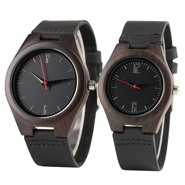 Lovers Gifts Luxury Royal Ebony Wood Watch Mens Fashion Wooden Women Dress Clocks Male Genuine Leather Valentine's Day Relojes