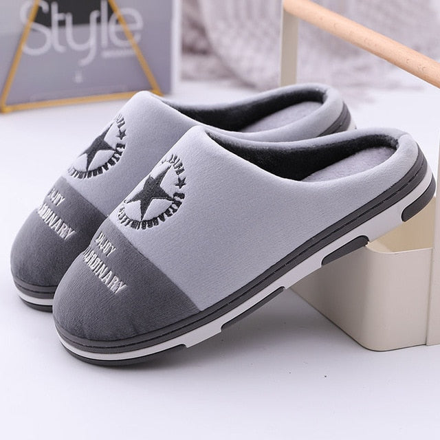 Men's Home Slippers Winter Warm Home Cotton Thick Shoes Bottom Soft Indoor Casual Shoes