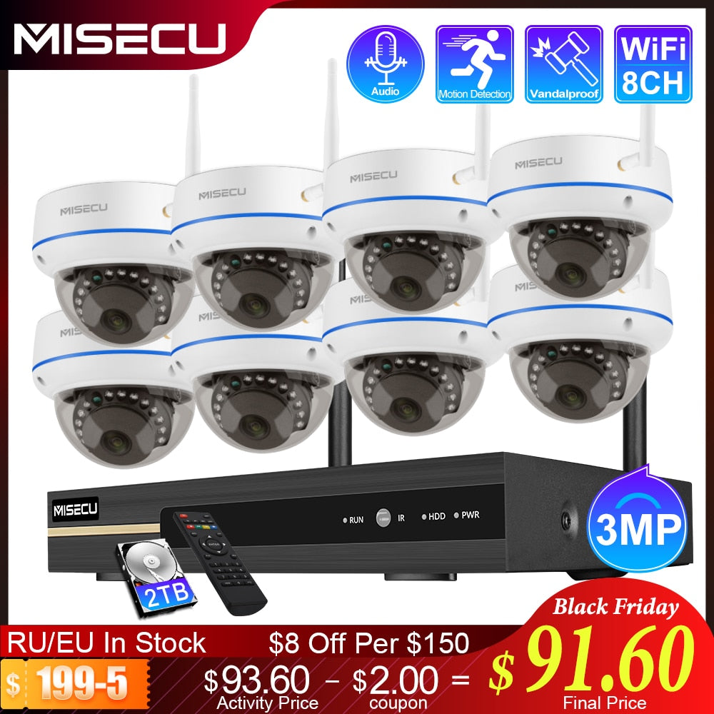 MISECU Wireless CCTV System 3MP NVR Indoor Vandalproof Wifi Camera Audio Record IR-CUT CCTV Camera IP Security Surveillance Kit