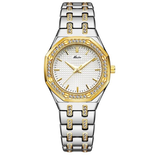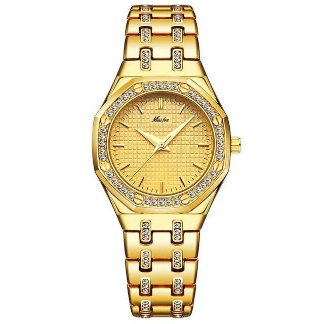 MISSFOX Fashion Watches Women's Expensive 18K Gold Ladies Wrist Watch Women Quartz Classic Analog Diamond Jewelry Hand Watch