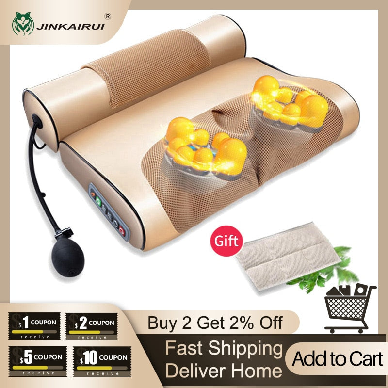 Neck Massage Pillow Electrical Cervical Traction Massager Wormwood Hot Compress Relief For Back Shoulder Pain Body Health Care